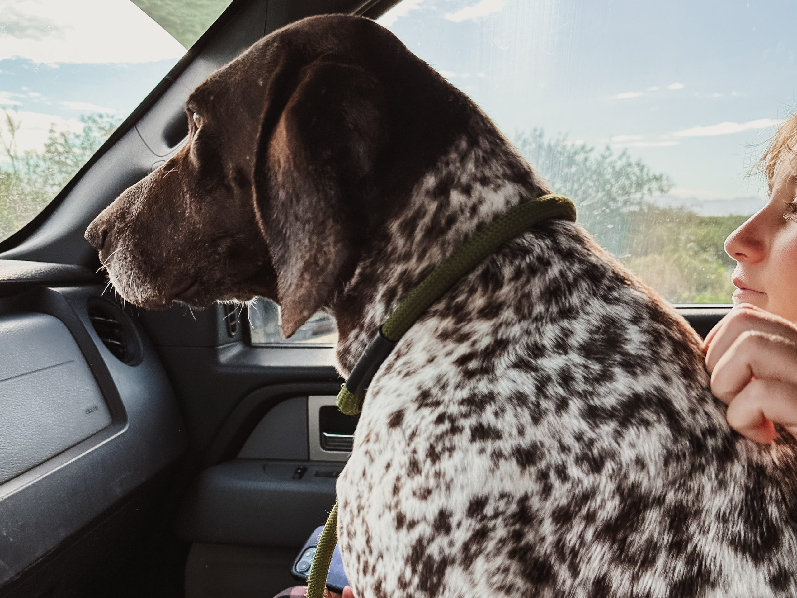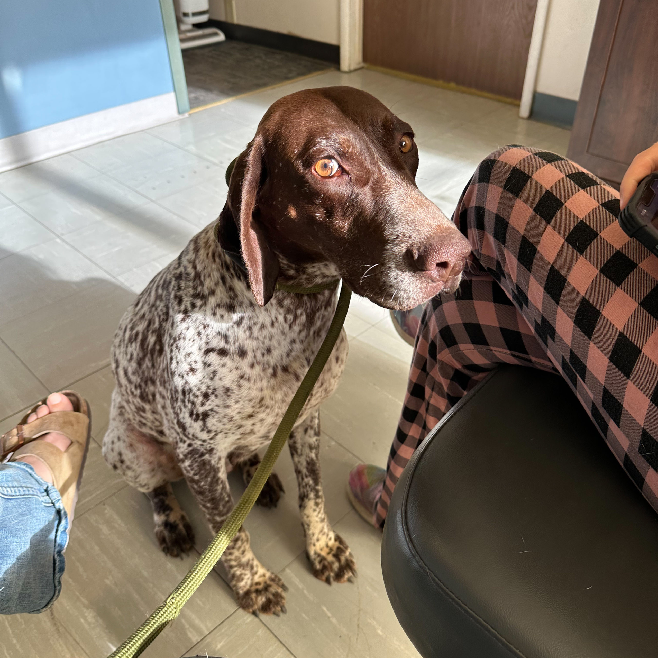 She’s wonderful with little kids, loves car rides, and does well out in public. With other dogs, she’s easygoing and content to stay out of the drama—more of a beta personality who just enjoys the peace. She’d enjoy anything you’d want to involve her in, she’d be up for hikes, road trips, camping, and even enjoys afternoons on the couch. What’s so nice about Pepper is that she’s at the start of the fun years of German Shorthairs, when they’re past the puppy phase, but game to do whatever. She’s an absolute joy and would be a great dog for families with young children, but she would also be a fine companion for someone who works at home and wants an easy dog they can spend evenings with. She’s very active when the situation calls for it, but calms down easily in the house.