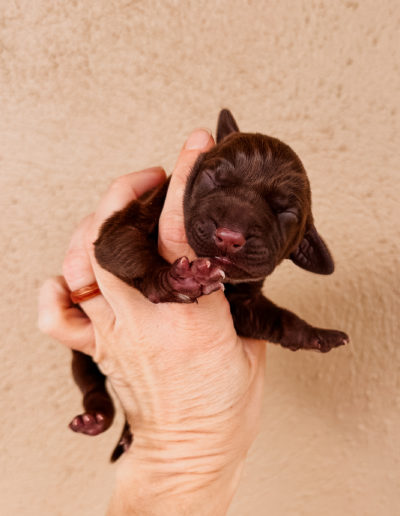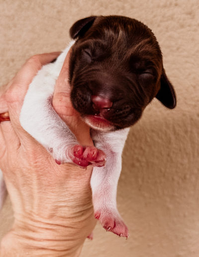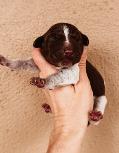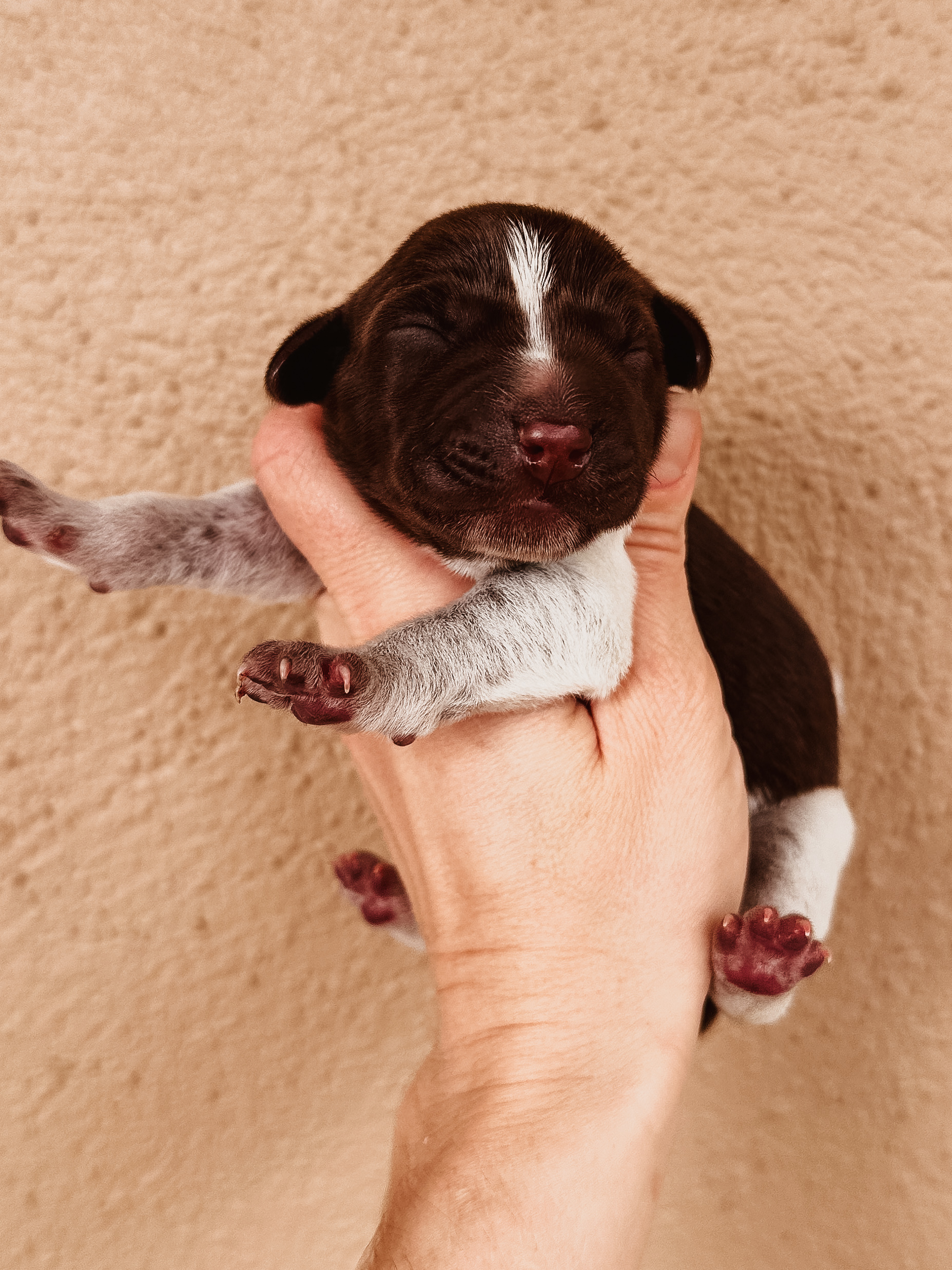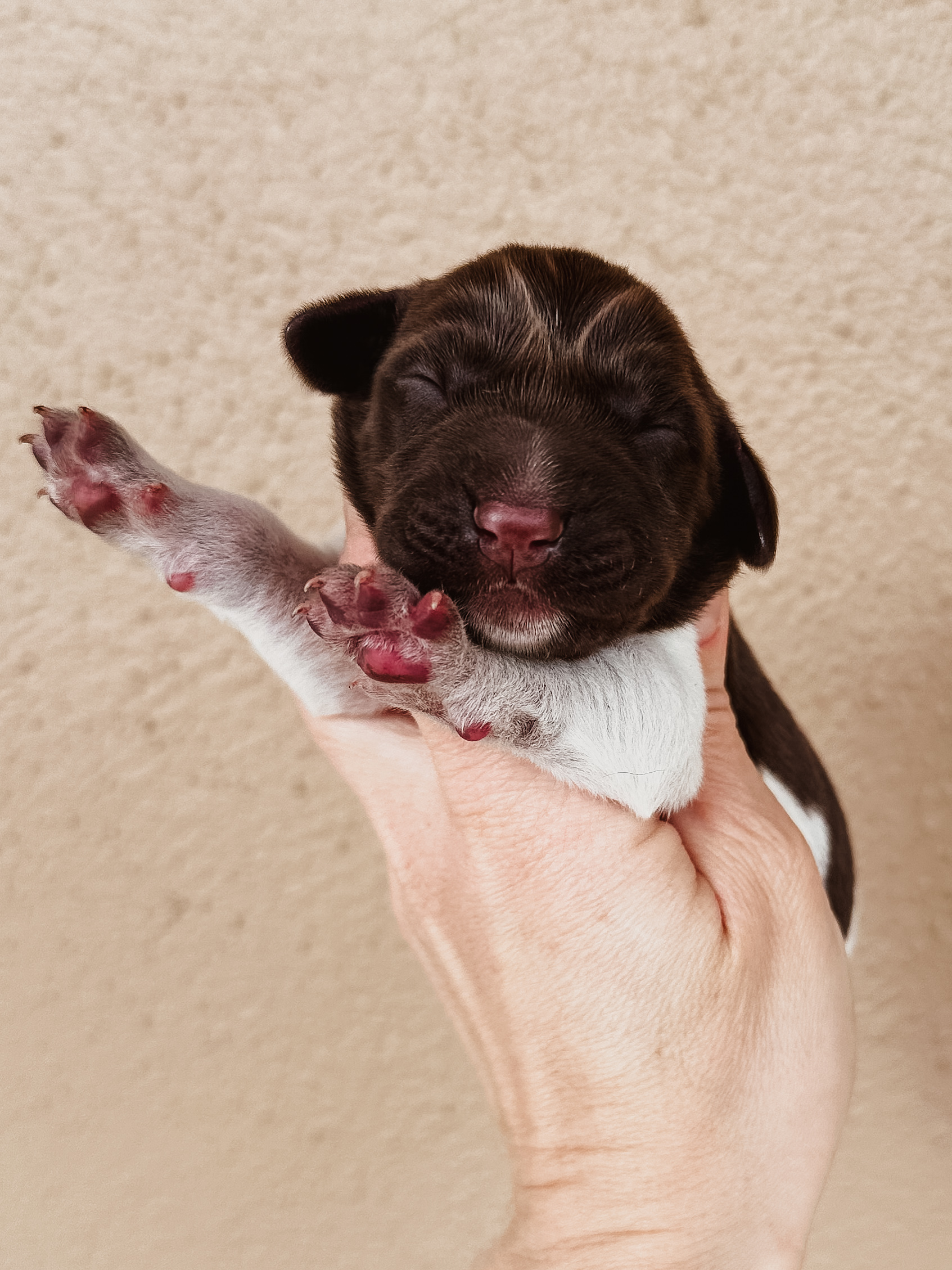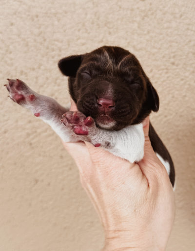 Jeanie & Leroy – Puppies born January 9, 2026. All puppies will be liver roan, 1 male puppy available.