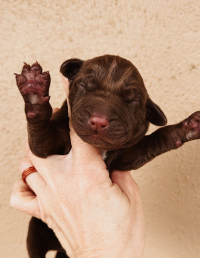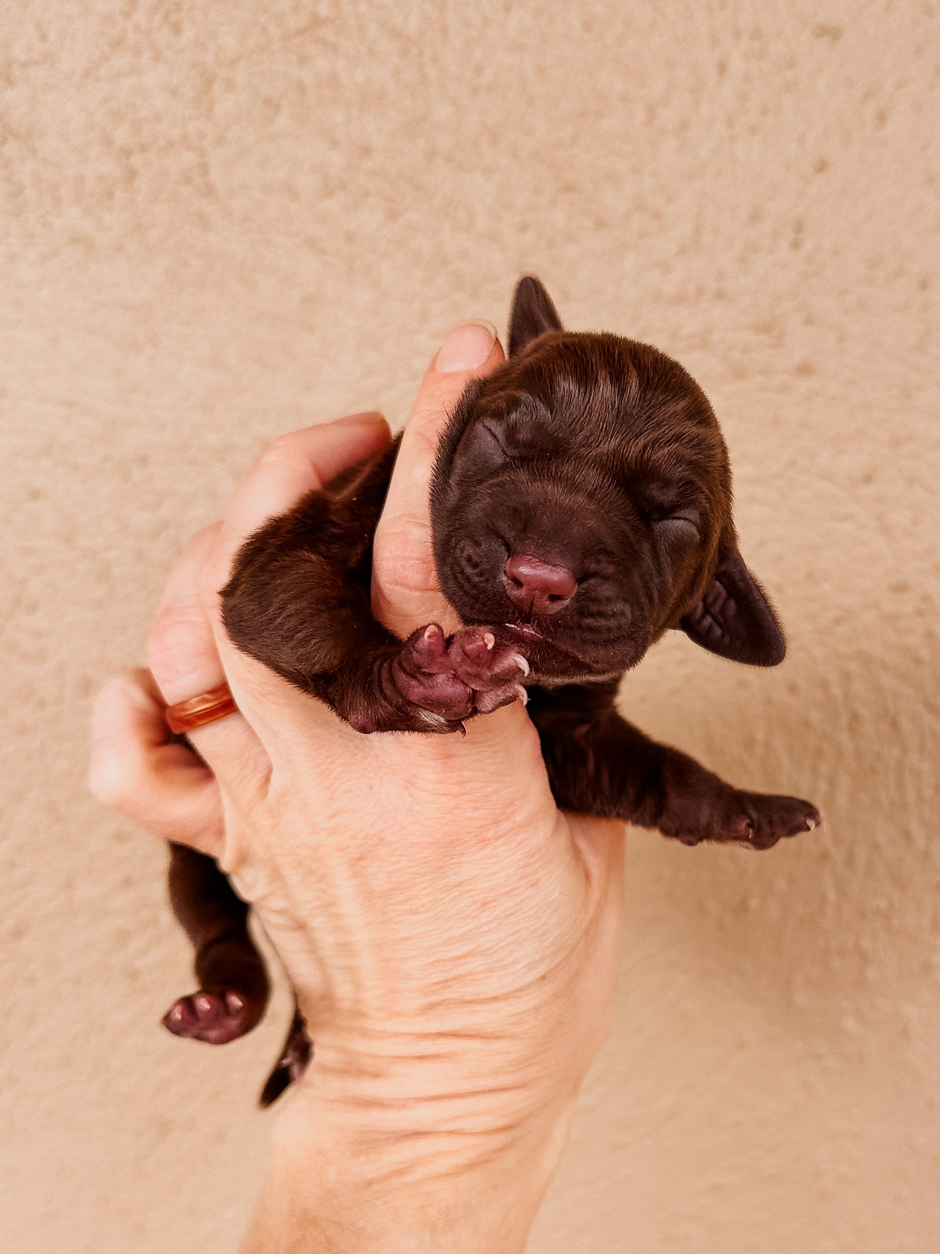Cleo & Leroy – Puppies born February 6, 2026, 2 females and 1 male available.